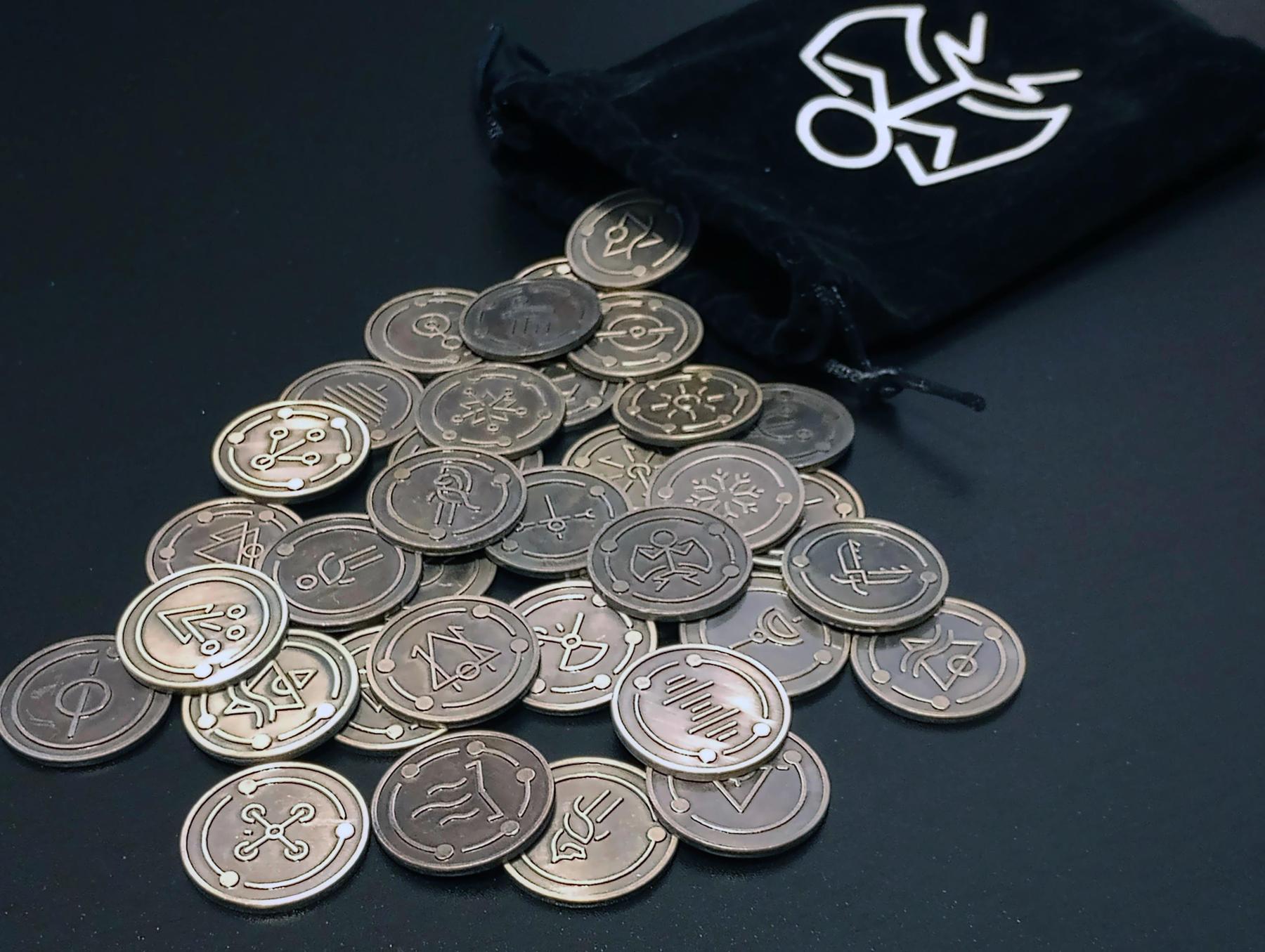 Included in the box are six custom six-sided dice (6d6), thirty-two system cards, sixty encounter cards, four player boards, a card to represented Grandfather, and a central board to house Grandfather. Also included are a variety of tokens and a full-color manual.